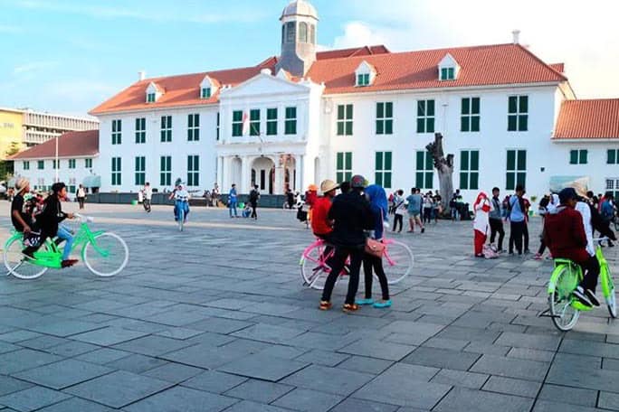 Erkunden Sie das historische niederländische Kolonialzentrum der Stadt. Mieten Sie ein farbenfrohes Fahrrad, um den Fatahillah-Platz zu erkunden.