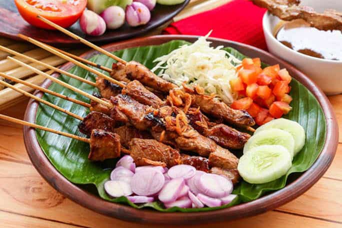 Essen Sie Sate Ayam (Hühnerspieße mit Erdnusssauce) bei einem Straßenverkäufer in Menteng und besuchen Sie anschließend das Henshin im Westin, um im 67. Stock peruanisch-japanische Küche zu genießen.