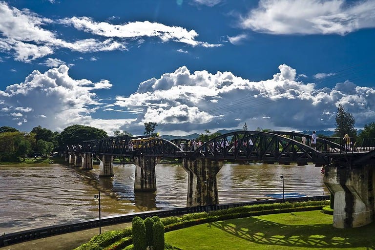 Sie können Kanchanaburi nicht besuchen, ohne über dieBrücke über den Kwai zu gehen. Besuchen Sie sie früh am Morgen, um den Menschenmassen zu entgehen und den Zug vorbeifahren zu sehen.
