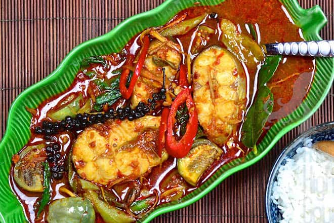 Kanchanaburi ist berühmt fürGaeng Pa (Dschungel-Curry), ein scharfes Curry auf Wasserbasis, das ohne Kokosmilch zubereitet wird und für das lokale Kräuter sowie Wildschwein oder Fisch verwendet werden.