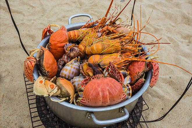 Sie befinden sich in der Hummerhauptstadt Vietnams. Begeben Sie sich zurSeafood Street (Bo Ke)entlang des Flusses, um lebende Hummer aus dem Becken auszuwählen und sie mit Knoblauchbutter grillen zu lassen – zu einem Bruchteil des Preises, den Sie zu Hause dafür bezahlen würden.
