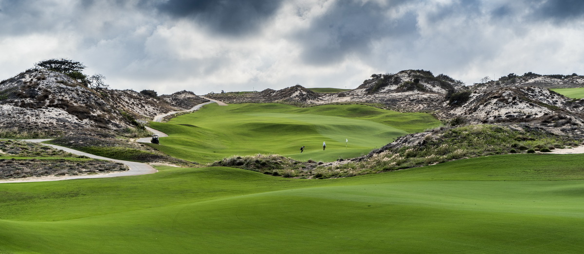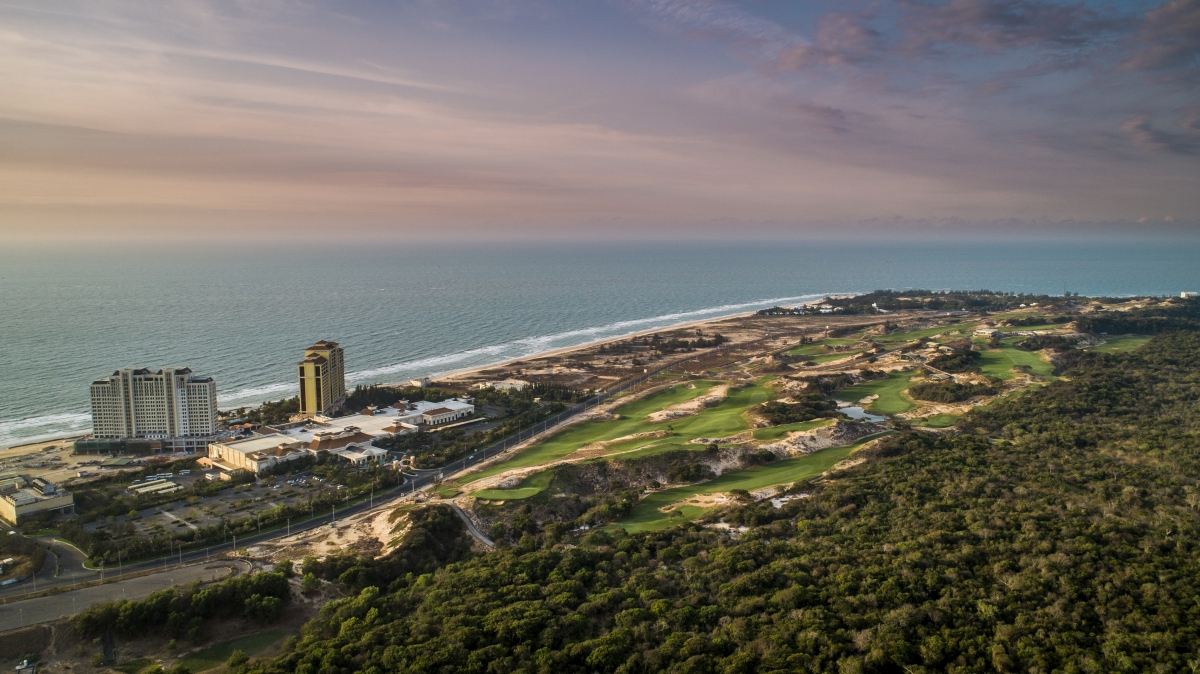 Der Bluffs Ho Tram Strip, der von der Golflegende Greg Norman meisterhaft gestaltet wurde, bietet ein unvergessliches Golfabenteuer, nur zwei Autostunden von der pulsierenden Stadt Ho Chi Minh City entfernt. An der malerischen südvietnamesischen Küste in der Provinz Ba Ria-Vung Tau gelegen, verspricht dieser einzigartige Par-71-Platz im Links-Stil eine Reise durch die raue Schönheit. Stellen Sie sich vor, Sie schlagen auf einem Küstenplateau mit dramatischen Höhenunterschieden ab, wo hoch aufragende Küstendünen jedes Loch einrahmen und die einheimische, windgepeitschte Vegetation die atemberaubende natürliche Kunstfertigkeit noch verstärkt. Der sandige Lehmboden sorgt für eine tadellose Drainage und Rasenbedingungen und bietet eine hervorragende Spielfläche, die sowohl optisch beeindruckend als auch anspruchsvoll ist und ein Erlebnis verspricht, das Ihre Sinne fesseln wird.