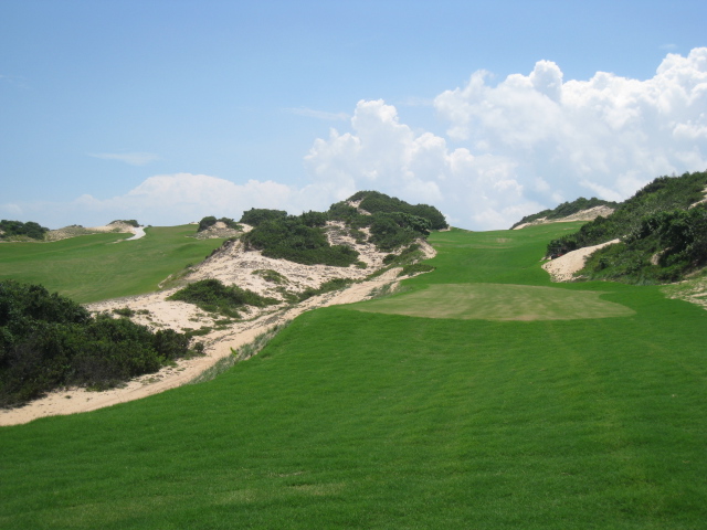 Der Bluffs Ho Tram Strip, der von der Golflegende Greg Norman meisterhaft gestaltet wurde, bietet ein unvergessliches Golfabenteuer, nur zwei Autostunden von der pulsierenden Stadt Ho Chi Minh City entfernt. An der malerischen südvietnamesischen Küste in der Provinz Ba Ria-Vung Tau gelegen, verspricht dieser einzigartige Par-71-Platz im Links-Stil eine Reise durch die raue Schönheit. Stellen Sie sich vor, Sie schlagen auf einem Küstenplateau mit dramatischen Höhenunterschieden ab, wo hoch aufragende Küstendünen jedes Loch einrahmen und die einheimische, windgepeitschte Vegetation die atemberaubende natürliche Kunstfertigkeit noch verstärkt. Der sandige Lehmboden sorgt für eine tadellose Drainage und Rasenbedingungen und bietet eine hervorragende Spielfläche, die sowohl optisch beeindruckend als auch anspruchsvoll ist und ein Erlebnis verspricht, das Ihre Sinne fesseln wird.