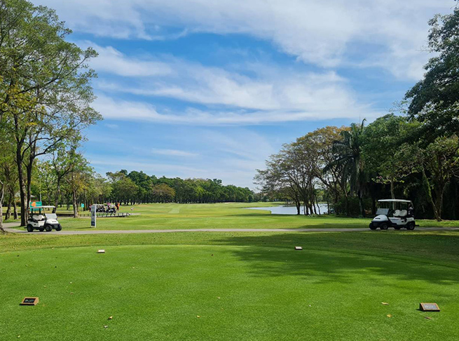 Golf im Alpine Golf und Sports Club (Schauplatz des Asien-Sieges von Tiger Woods im Jahr 2000 und einer der besten Golfplätze Bangkoks).
