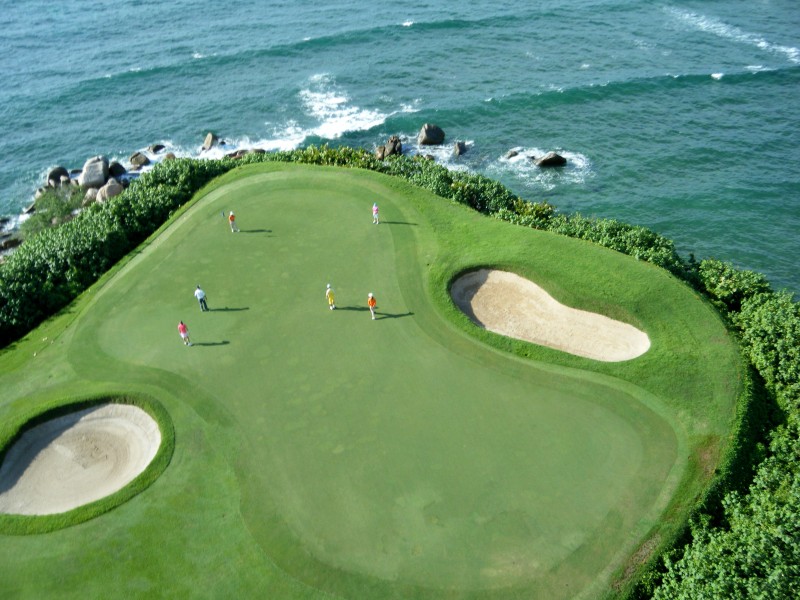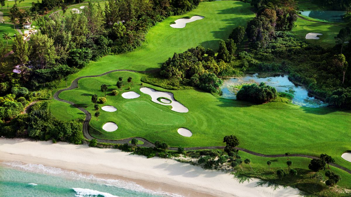 Der Ocean Course ist besonders bemerkenswert wegen seiner einzigartigen Mischung aus Dschungel- und Meereslöchern. Auf Ihrem Weg durch den üppigen Riau-Dschungel können Sie auf einheimische Wildtiere treffen, was eine ruhige und doch abenteuerliche Atmosphäre schafft. Die Löcher am Meer sind ein Highlight, vor allem das berühmte Par-5-Loch 7, bei dem das Meer auf halber Strecke des Fairways eine dramatische Kulisse bildet. Das kurze Dogleg-Loch 8 und das malerische Par-3-Loch 9, das einen präzisen Schlag über den Strand auf ein von Wasser umgebenes Grün erfordert, bieten unvergessliche Momente. Das 10. Par 4 bietet einen letzten atemberaubenden Blick auf die Küste.
