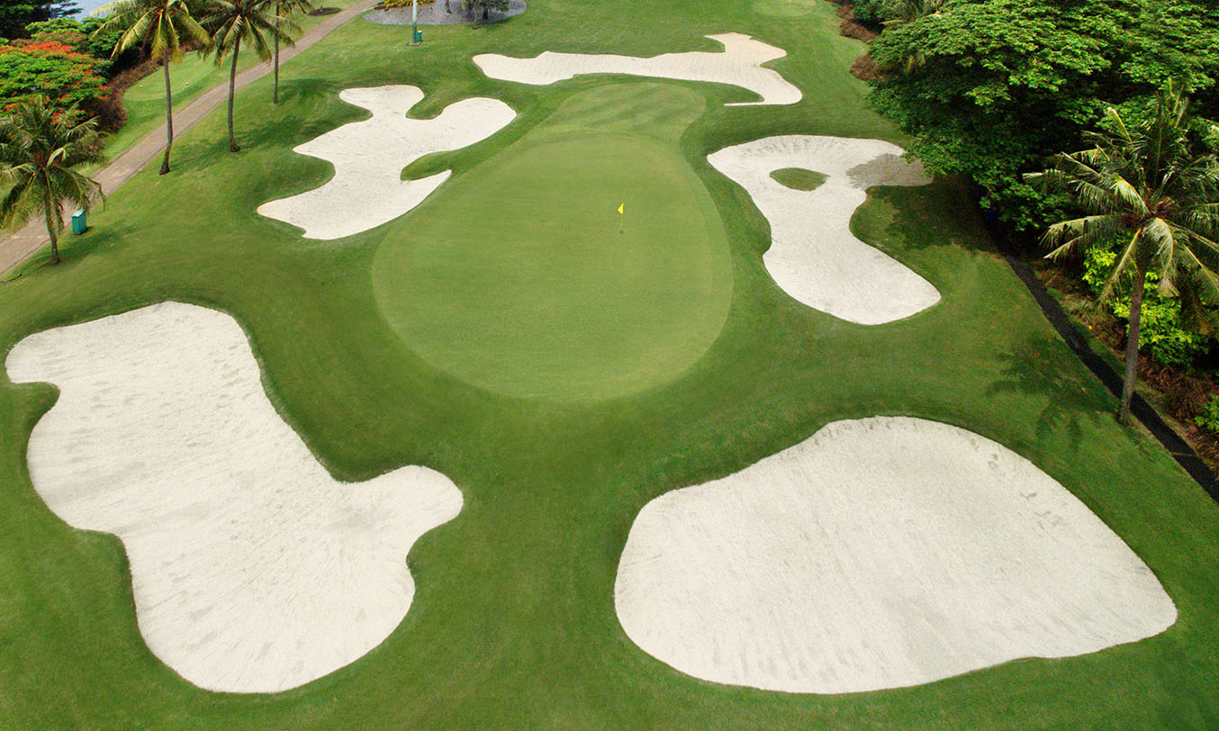 Der in der Nähe der Javasee gelegene Damai Indah Golf, Pantai Indah Kapuk (PIK) Course bietet ein fesselndes Golferlebnis, das von dem renommierten Robert Trent Jones Jr. entworfen wurde. Dieser Par-72-Platz erstreckt sich über 6.048 Meter, integriert nahtlos die Feuchtgebiete der Küste und verfügt über die charakteristischen welligen Grüns und strategisch platzierten Bunker, die Golfer aller Spielstärken herausfordern. Das Layout des Platzes ist gut durchdacht, wobei die ersten neun Bahnen im Uhrzeigersinn um den Platz herum gespielt werden und am sechsten Par-5-Loch gegen den Uhrzeigersinn.