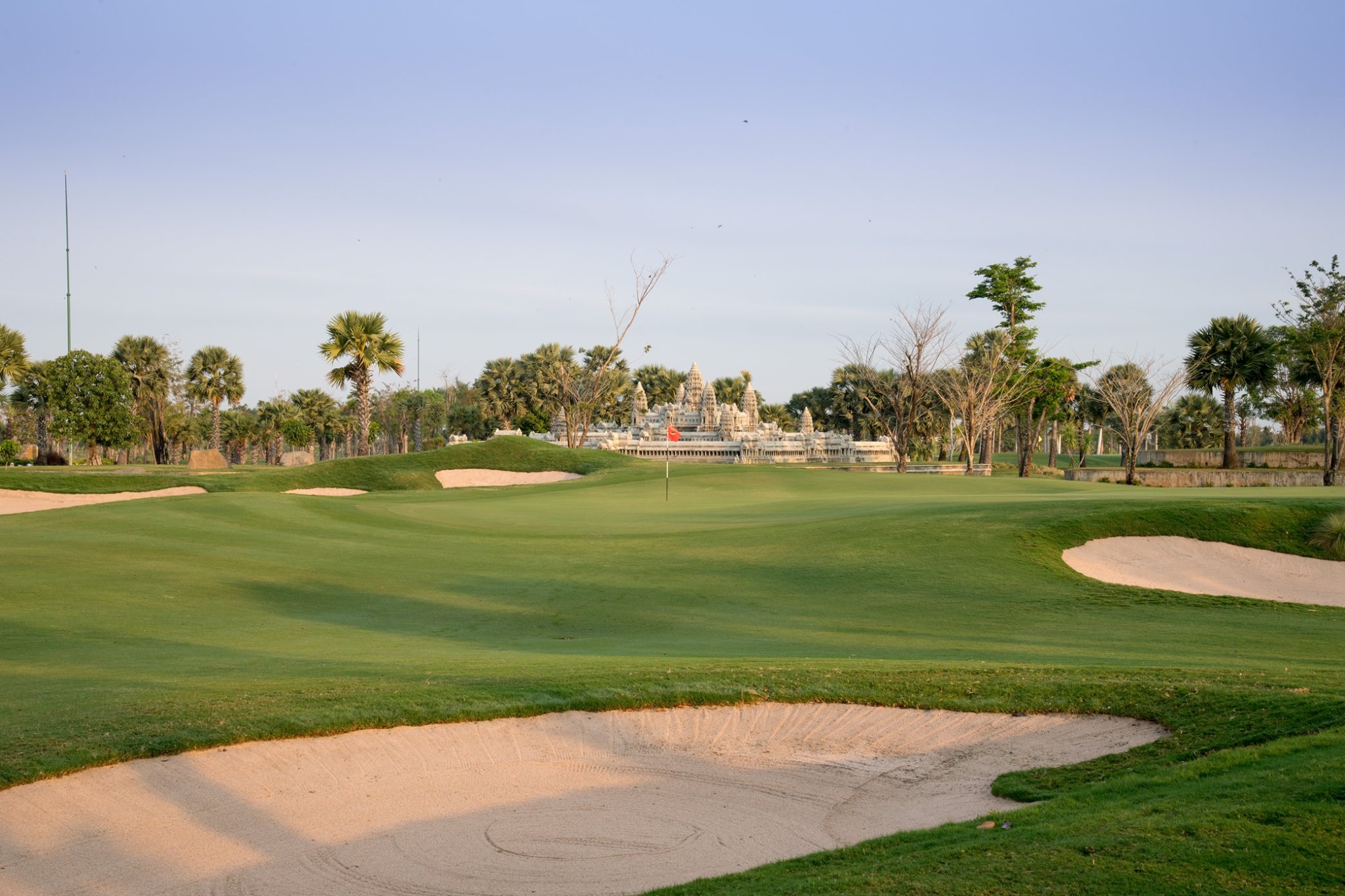 Zu den Übungseinrichtungen gehören spezielle Pitching- und Putting-Greens in der Nähe des Clubhauses, die sich ideal zum Aufwärmen vor der Runde eignen. Das Clubhaus ist zwar bescheiden, bietet aber einen von Sofitel inspirierten Service und ein Restaurant, das eine köstliche Auswahl an westlichen, Khmer- und asiatischen Gerichten serviert. Zu den weiteren Annehmlichkeiten gehören komfortable Umkleideräume, Duschen und ein Pro-Shop mit Markenartikeln und Souvenirs.