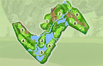 Der Platz ist in vier Bahnen unterteilt, die jeweils eine besondere Herausforderung darstellen. Platz A befindet sich in einem Neubaugebiet mit zukünftigen Unterkünften, während die Plätze B, C und D am Clubhaus beginnen. Auf den Plätzen C und D ist Präzision am Abschlag gefragt, während A und B ein strategisches Spiel erfordern. Vor allem die Par-5-Löcher sind lang und spielen oft gegen den Wind, während die Par-3-Löcher Möglichkeiten zum Punkten bieten, wenn Sie die Bunker am Grün vermeiden.