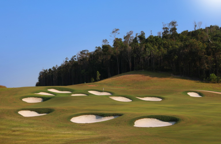 Der Platz ist bekannt für sein "Risiko-Belohnungs"-Layout mit erheblichen Höhenunterschieden und markanten Bunkern mit vollen Sandflächen. Wasserelemente, darunter Wasserfälle, Seen und Teiche, verleihen dem Spiel sowohl Schönheit als auch Herausforderung. Vor allem das 500 Meter lange zweite Loch ist ein strategisches Par-5, das die Spieler mit einem Bach, der das Fairway halbiert, auf die Probe stellt und eine sorgfältige Schlagplanung erfordert.