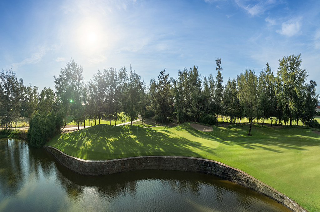 Tauchen Sie ein in eine fesselnde Herausforderung im Links-Stil, die von Greg Norman selbst akribisch ausgearbeitet wurde und mit der natürlichen Schönheit der historischen Küstenlinie von Danang harmoniert. Dies ist ein Platz, auf dem die Kunstfertigkeit von Mutter Natur im Mittelpunkt steht, geformt von den Dünen, die Zeugen jahrhundertelanger Geschichte sind, einschließlich bedeutender Ereignisse des Vietnamkonflikts. Der sandige Lehmboden, der an die berühmtesten Links der Welt erinnert, ermöglicht kreative Schläge und ermutigt die Spieler zu einem strategischen Ansatz. Während die Fairways großzügig sind, erfordern die modellierten Bunker und die hügeligen Grüns überlegte Präzision. Die umliegenden langnadeligen Kiefern bieten ein malerisches, aber auch furchterregendes natürliches Hindernis, das Ihrem Spiel eine weitere strategische Tiefe verleiht und dafür sorgt, dass jeder Schlag eine wohlüberlegte und lohnende Erfahrung ist.